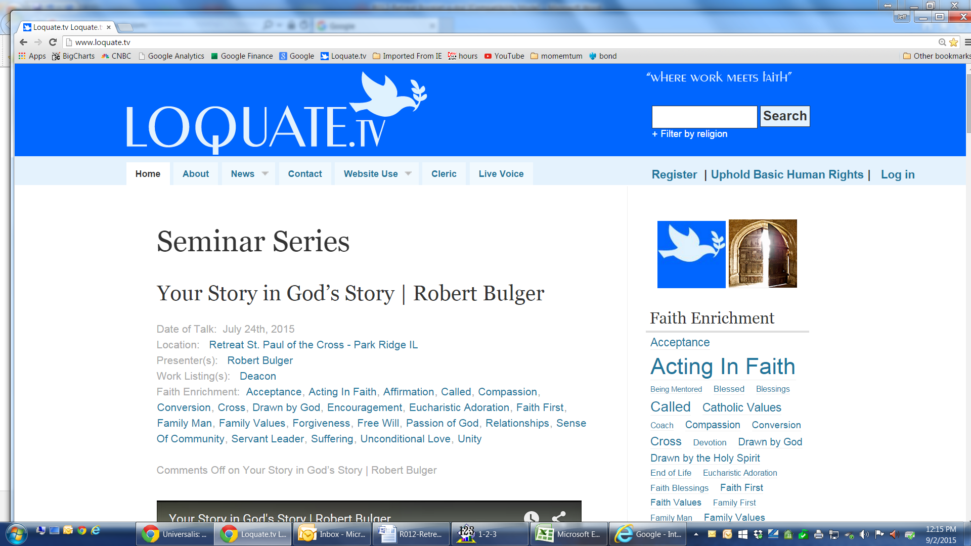 You may also find faith enrichment categories on the Loquate home page on the right. By clicking a category that strikes you, you will find inspiring videos identified as falling under that faith enrichment category “Where Work Meets Faith.”